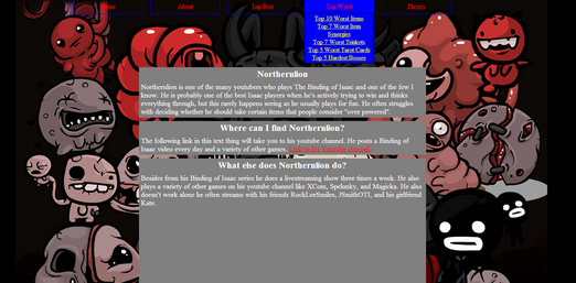 Today was my last day at my Elements of Web Design program and we had a final. It was cumulative covering all the things we learned in the class. I was honestly surprised at how well I knew everything. I never really stopped to think of everything that I'd learned so far until after I finished my final. I realized that I have learned a lot over the last couple of weeks. We also had to turn in a final project in which we had to make a website with multiple pages about a topic of our choice. I chose to do mine based on an indie game I really enjoy playing and know a lot about. We had to make the website not only usable, but it had to look presentable too. Overall, I really enjoyed the class and learning about coding with HTML and CSS, as well as, meeting and getting to know new people. Here are just a few screenshots of my final website. My website explains the best and worse things about my favorite video game.