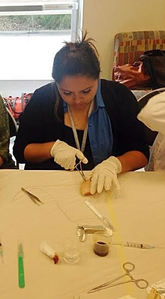 In the first picture I am sewing up a cut using materials that were authorized for us from a neurosurgeon.